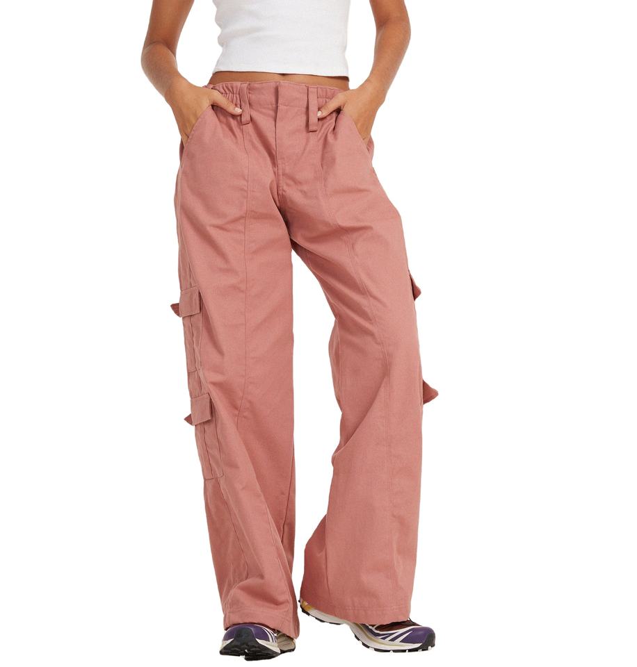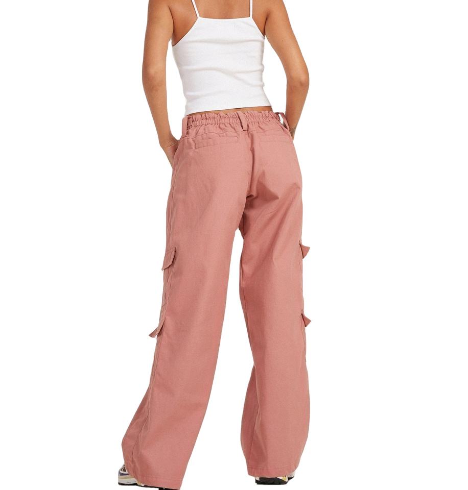 กางเกงคาร์โก้ผู้หญิงสีสันหลากหลายแบบลำลอง หลายกระเป๋า เอวสูง ขากว้าง มีซิป กระเป๋าหลายช่อง ผ้าผสมไนลอน/คอตตอน ทรงหลวม