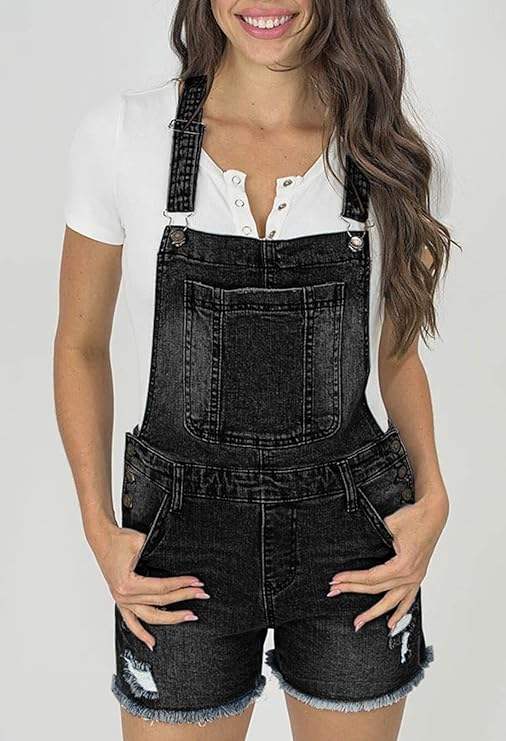 ชุดรอมเปอร์ยีนส์ขาสั้นสำหรับผู้หญิงชุดเอี๊ยมขาสั้นแบบคลาสสิกมีสายรัดปรับระดับได้และชุดรอมเปอร์ยีนส์ลำลองสำหรับฤดูร้อน