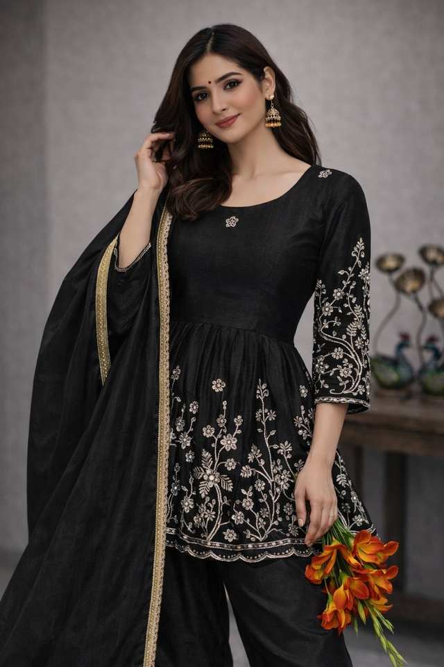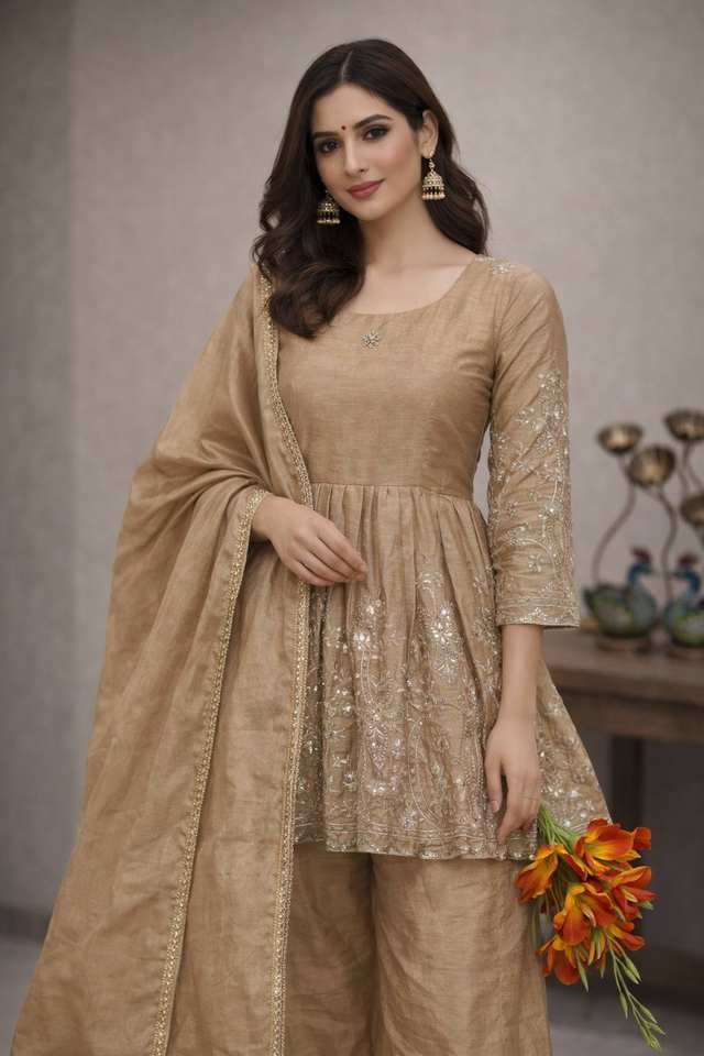 ชุดคุรตะปาลาซโซสำหรับผู้หญิง สีเขียว พร้อมงานปัก | ชุดงานเลี้ยง ชุดพื้นเมือง ชุดแต่งงาน และชุดสำหรับงานเทศกาลสำหรับผู้หญิง