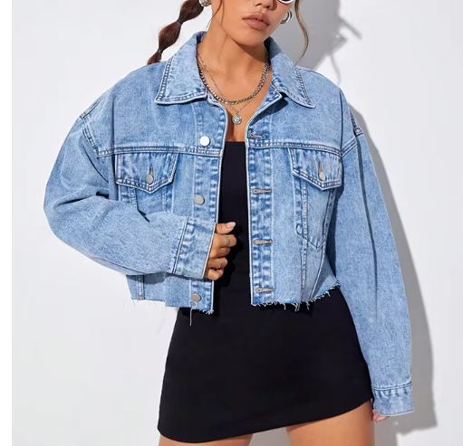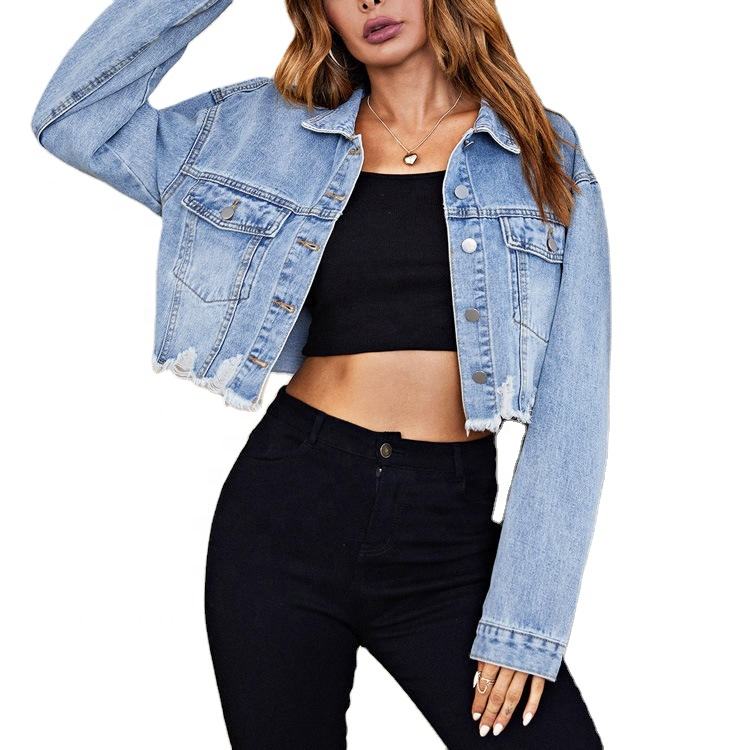 เสื้อแจ็กเก็ตผ้ายีนส์แบบถักสำหรับสตรีทแฟชั่นวินเทจทรงสลิมฟิตระบายอากาศได้ดี