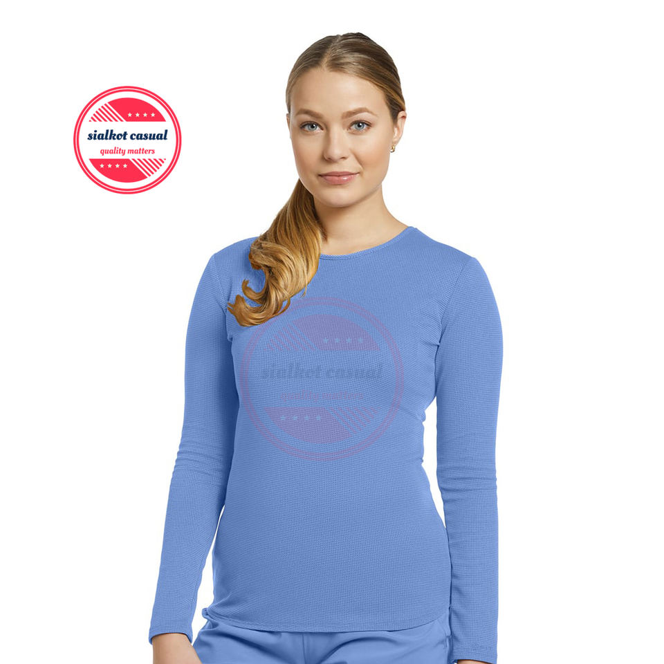 เสื้อยืดแขนยาวผ่าแขนยาวโรงพยาบาลแพทย์หญิง | คุณภาพสูงคอกลมแขนยาวคลินิกการแพทย์ภายใต้การขัด