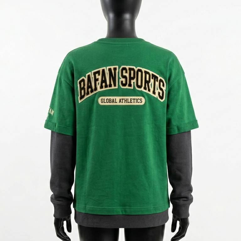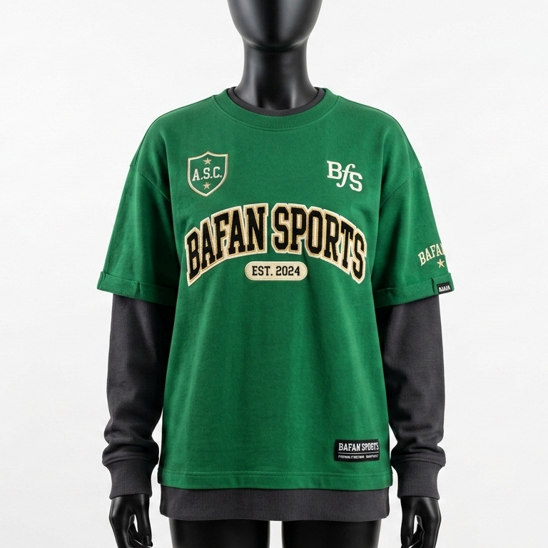 เสื้อยืดผู้หญิงสองชั้น ผ้าคอตตอนผสมโพลีเอสเตอร์ สีเขียวดำ พรีเมียม ปักลายโลโก้ตามสั่ง เสื้อสองชั้นผ้าคอตตอน