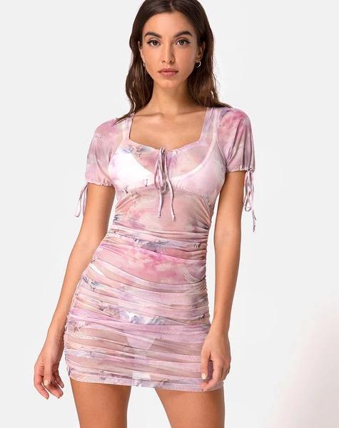 Women Dresses Transparent Pegasus Pink Tube Mesh Dress