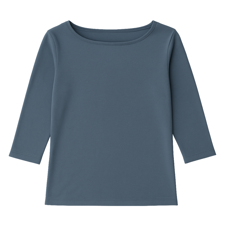 เสื้อยืดผู้หญิงสีน้ำเงินเข้ม แขนสามส่วน คอกลม ผ้าฝ้ายออร์แกนิค 100% คุณภาพพรีเมียม ผ่านการรับรอง GOTS ผ้าเนื้อนุ่มพิเศษ ทรงคลาสสิก