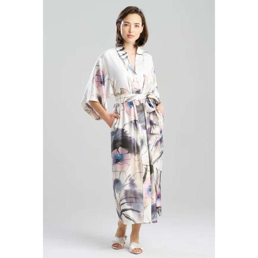 ชุดคลุมกิโมโนผ้าซาตินแบบยาวสำหรับผู้หญิง เป็นมิตรกับสิ่งแวดล้อม พร้อมสายคาดเอว ดีไซน์หรูหราสำหรับใส่พักผ่อน