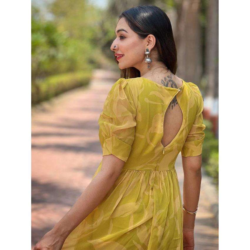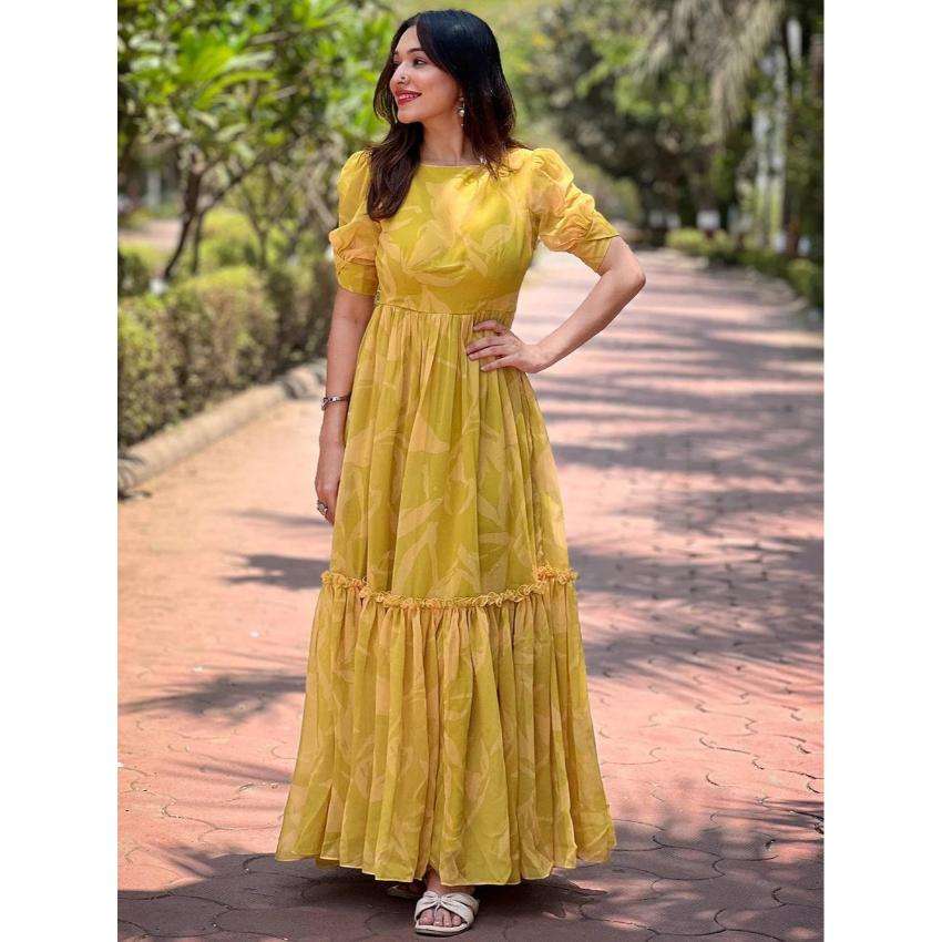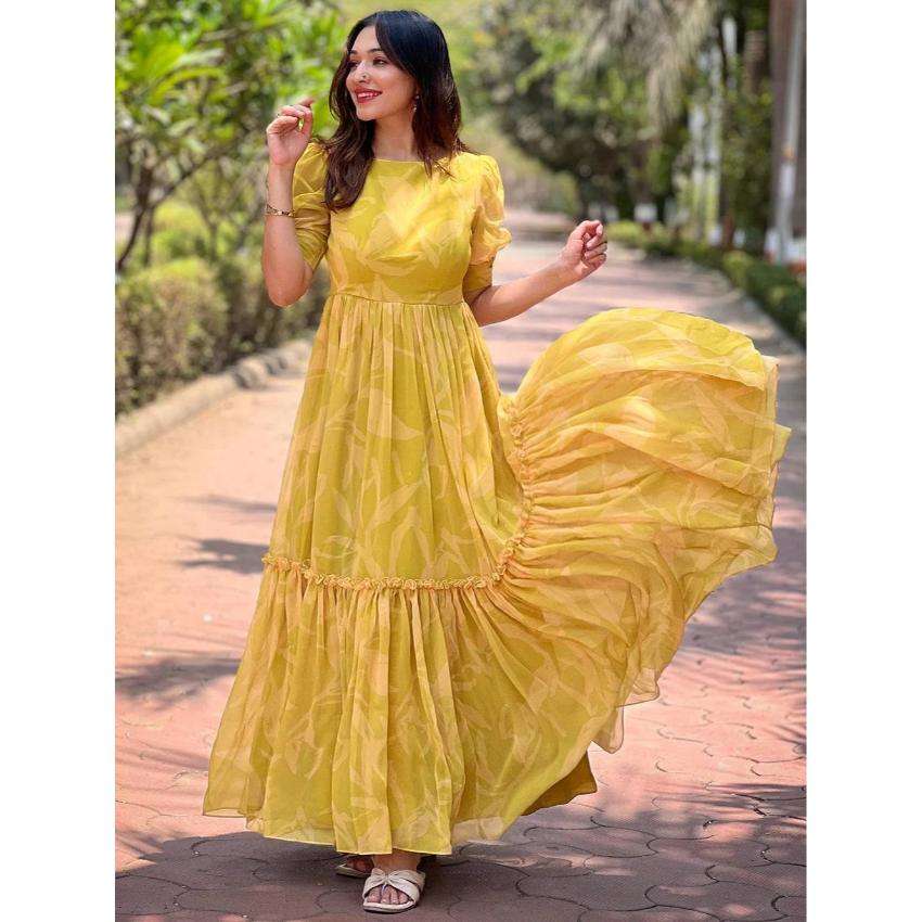 ชุดเดรสยาวพิมพ์ลายสีเหลืองเอวสูงแบบธรรมชาติ ซักได้ เป็นมิตรต่อสิ่งแวดล้อม สำหรับผู้หญิง แขนพอง คอกลม เหมาะสำหรับฤดูร้อน