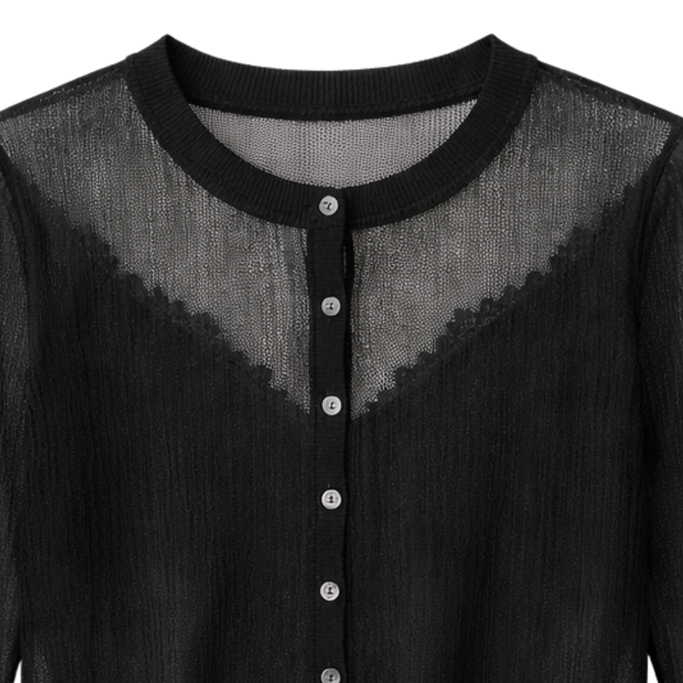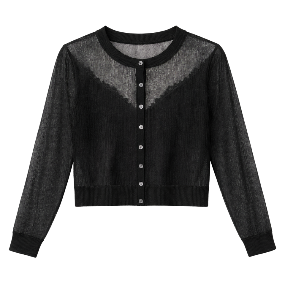 เสื้อคาร์ดิแกนไหมพรมเนื้อบางเบาสำหรับผู้หญิง ยี่ห้อ Eden ติดกระดุมด้านหน้า โปร่งแสงเล็กน้อย แขนยาว สวมใส่เป็นเสื้อคลุมชั้นในสำหรับฤดูร้อน ทรงพอดีตัว