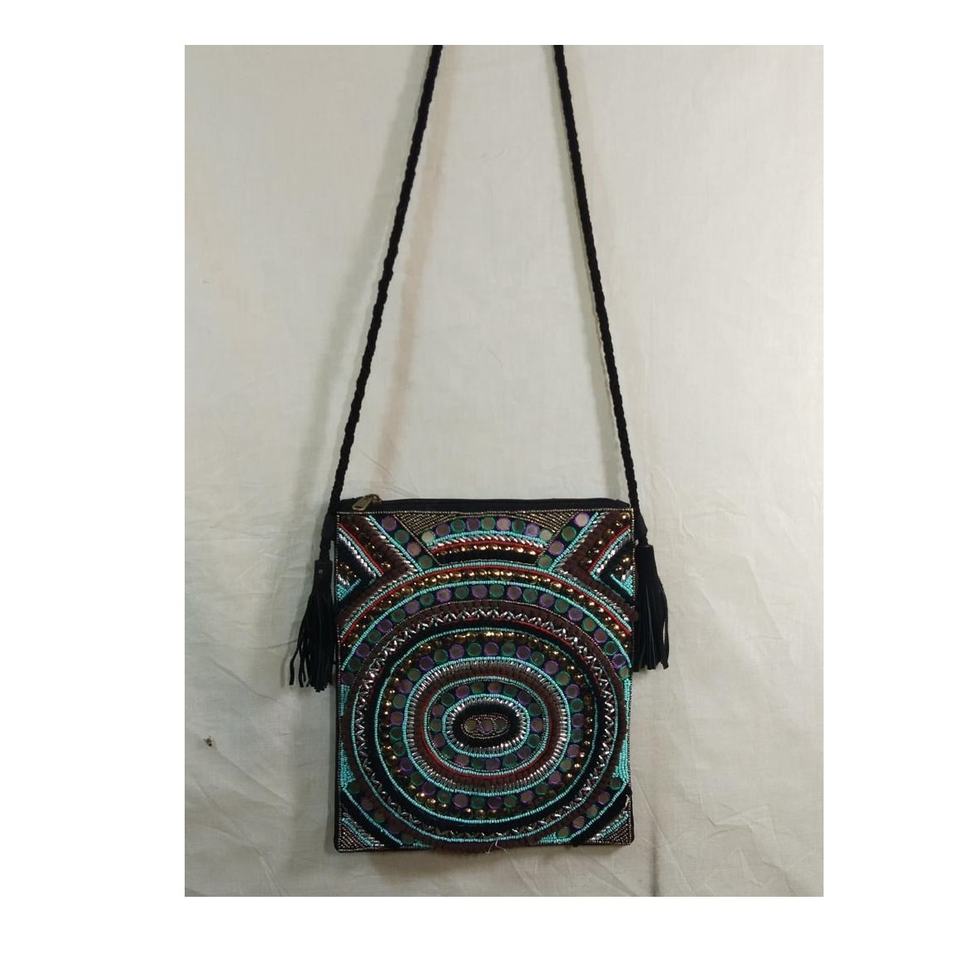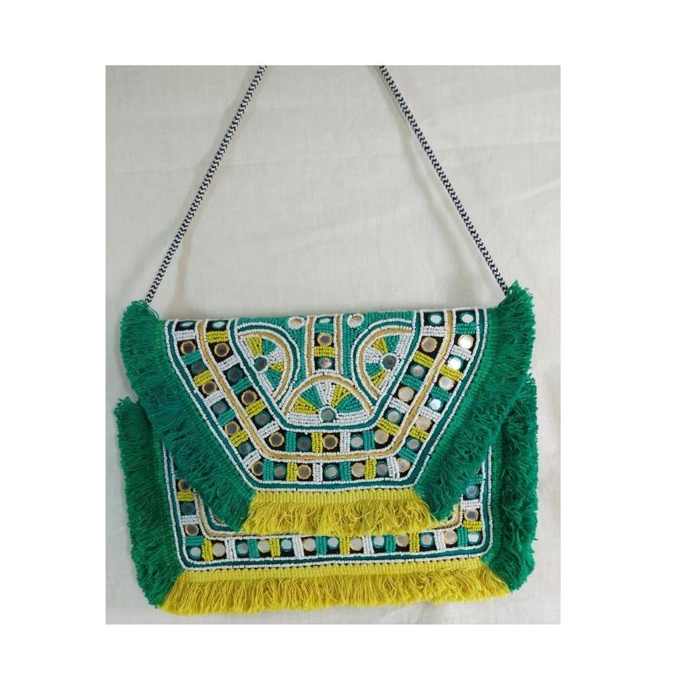 กระเป๋าคลัทช์ลูกปัดงานแฮนด์เมดสไตล์โบฮีเมียนทำมือสไตล์อินเดียหรูหราสำหรับผู้หญิงกระเป๋าสะพายข้างวัสดุผ้าใบมีซิปสำหรับปาร์ตี้ช้อปปิ้งตอนเย็น