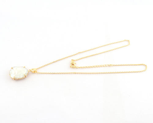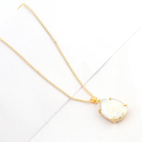 สร้อยคอพลอยไข่มุกน้ำจืดธรรมชาติอันหรูหราของผู้หญิง,สร้อยคอพร้อมจี้ไข่มุกชุดง่ามสายโซ่ชุบทอง24K
