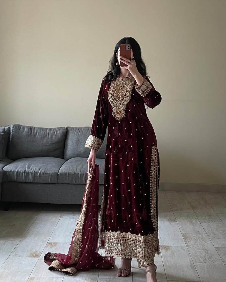 ชุดเดรสพื้นเมืองของผู้หญิงพร้อม dupatta และกางเกงแนบ