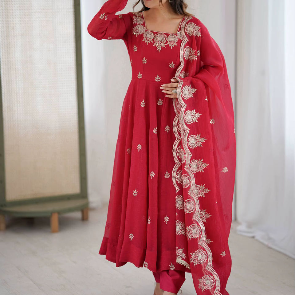 ชุดคุर्ตาปักลายชนเผ่าสำหรับผู้หญิง พร้อมกางเกงและผ้าคลุมไหล่