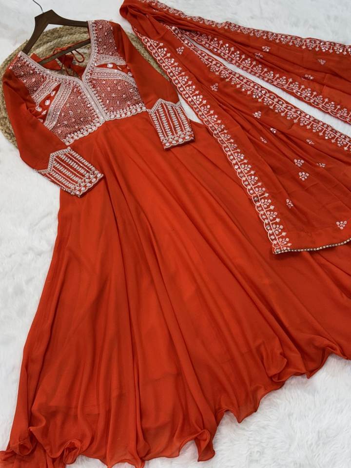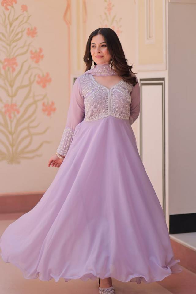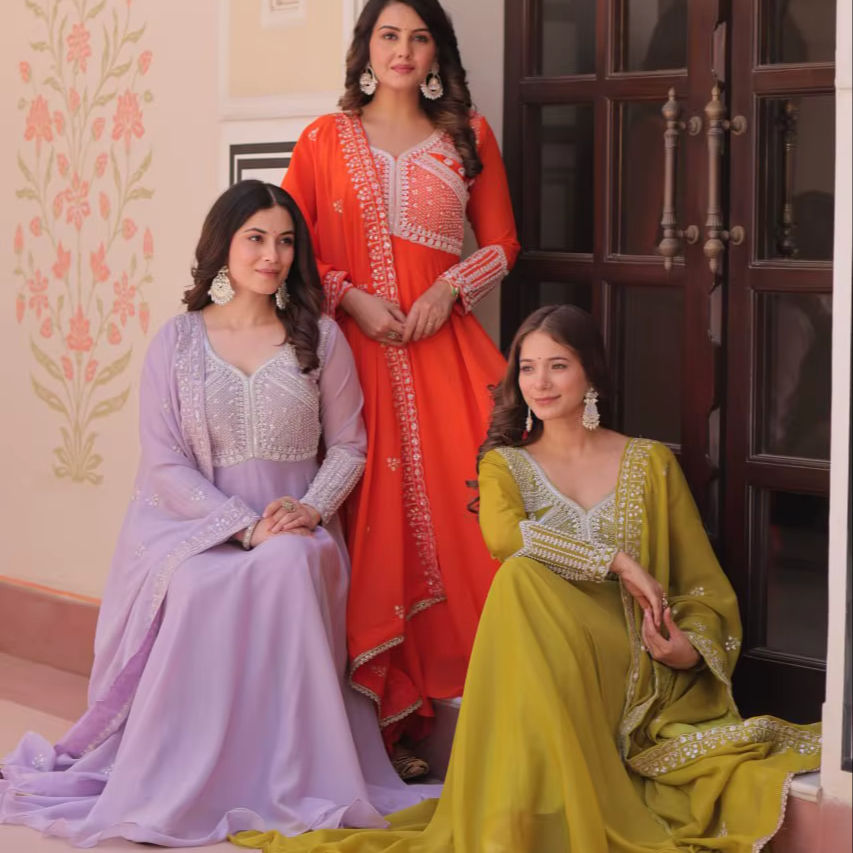 ชุดอานาร์กาลีคุร์ตาและผ้าคลุมไหล่สำหรับผู้หญิง แบรนด์ EthnicStar ผ้าจอร์เจตต์ ประดับเลื่อมและลูกปัดปักอย่างประณีต