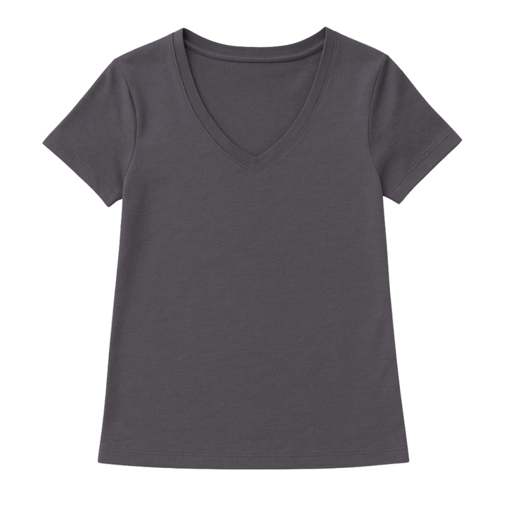 เสื้อยืดผู้หญิงสีม่วงซีด แขนสั้น คอวี ผ้าฝ้ายออร์แกนิคคุณภาพสูง ผ่านการซักแล้ว ได้รับการรับรองมาตรฐาน GOTS เนื้อผ้านุ่ม ระบายอากาศได้ดี ทรงพอดีตัว