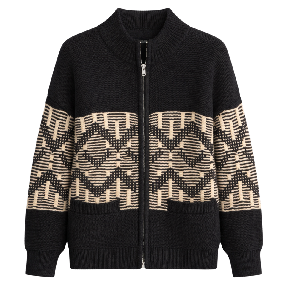 เสื้อแจ็คเก็ตถักลายแฟร์ไอส์สำหรับผู้หญิง ซิปด้านหน้า แขนยาว ลายพิมพ์สวยงาม ให้ความอบอุ่น เหมาะสำหรับใส่ซ้อนเป็นชั้นในฤดูหนาว สไตล์คาร์ดิแกน สำหรับใส่ในชีวิตประจำวัน