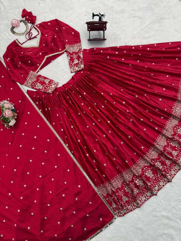 ชุดเลเฮนกาโชลีผ้าซาตินไหมประดับเลื่อมสำหรับผู้หญิง พร้อมเสื้อท่อนบนแบบยังไม่เย็บติดและผ้าคลุมศีรษะ