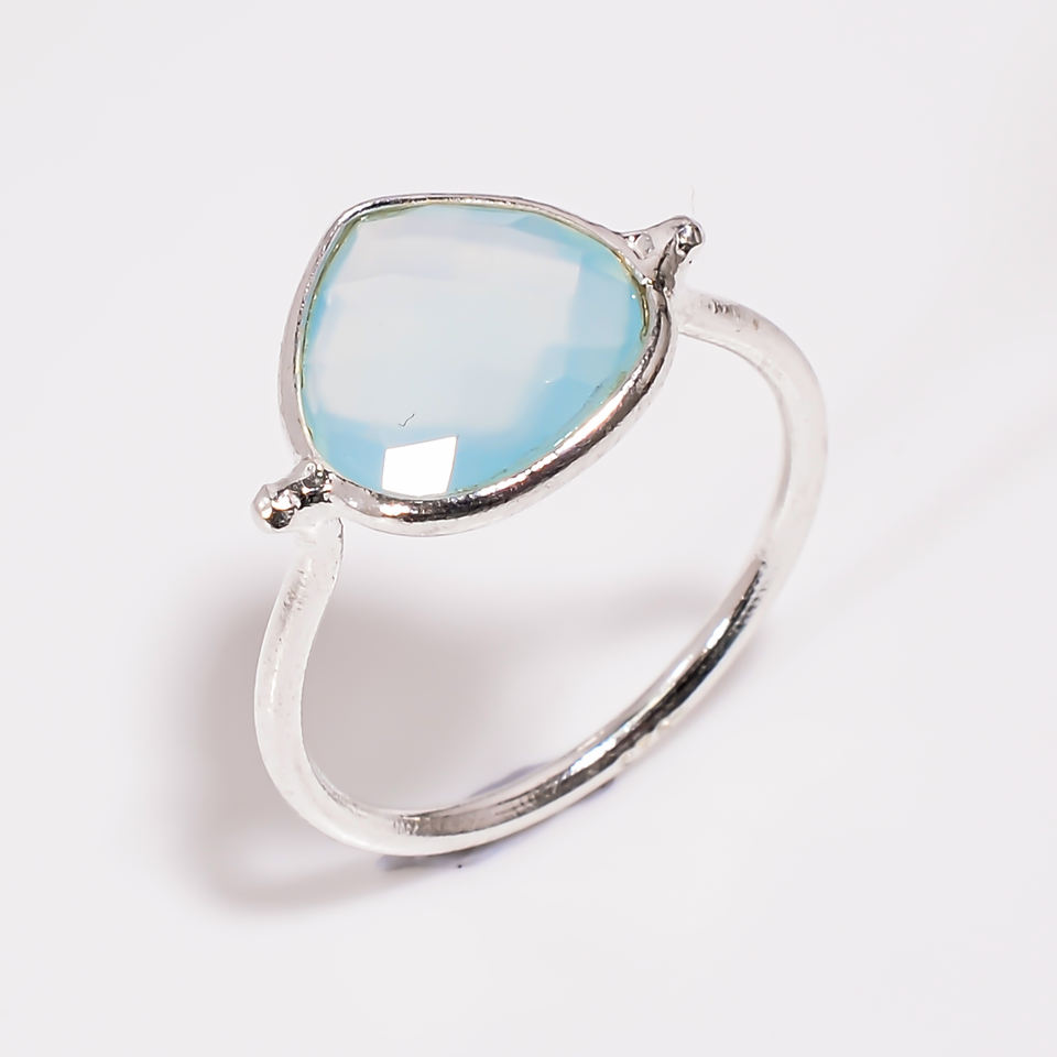 แหวนเงินสเตอร์ลิง925แฟชั่นผู้หญิงแหวนพลอยคาลซิโดนีธรรมชาติทำด้วยมือ925สเตอร์ลิงเงินอัญมณีผู้ส่งออก