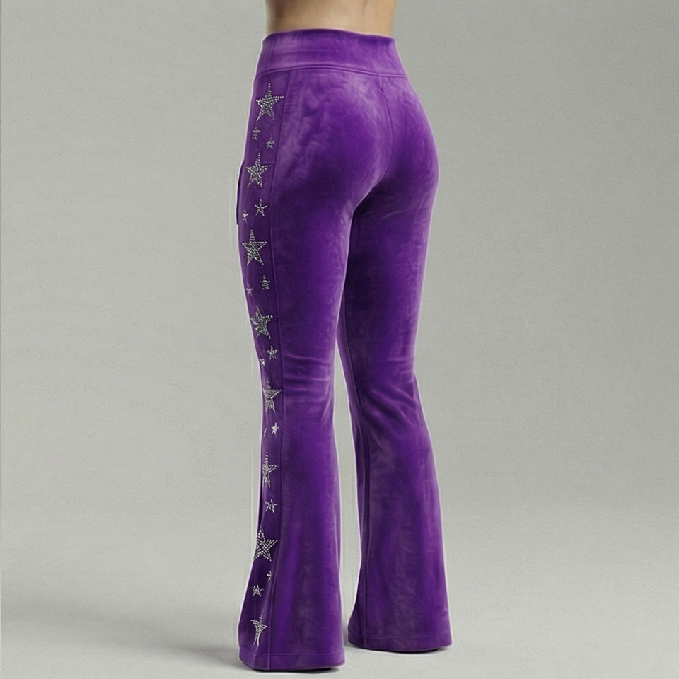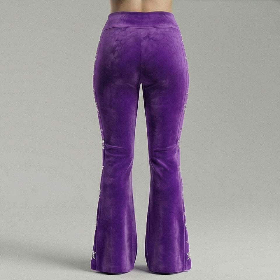 กางเกงเลกกิ้งแฟชั่นผู้หญิง ประดับเพชร สีม่วง เอวสูง ยืดได้ สไตล์สตรีทสุดเทรนดี้