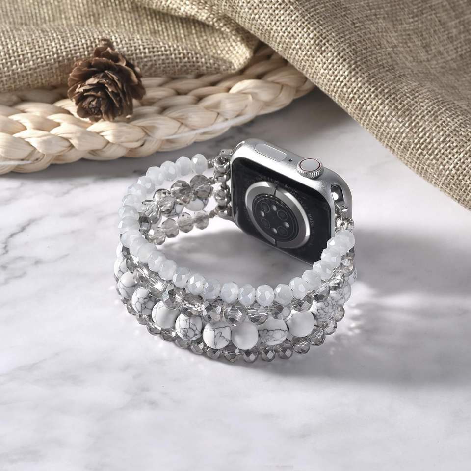 สายนาฬิกาลูกปัดมุกทำด้วยมือแฟชั่นสำหรับ iWatch สำหรับ Apple Watch Series 10 9 SE 38 40 41 42 45 46 49มม.