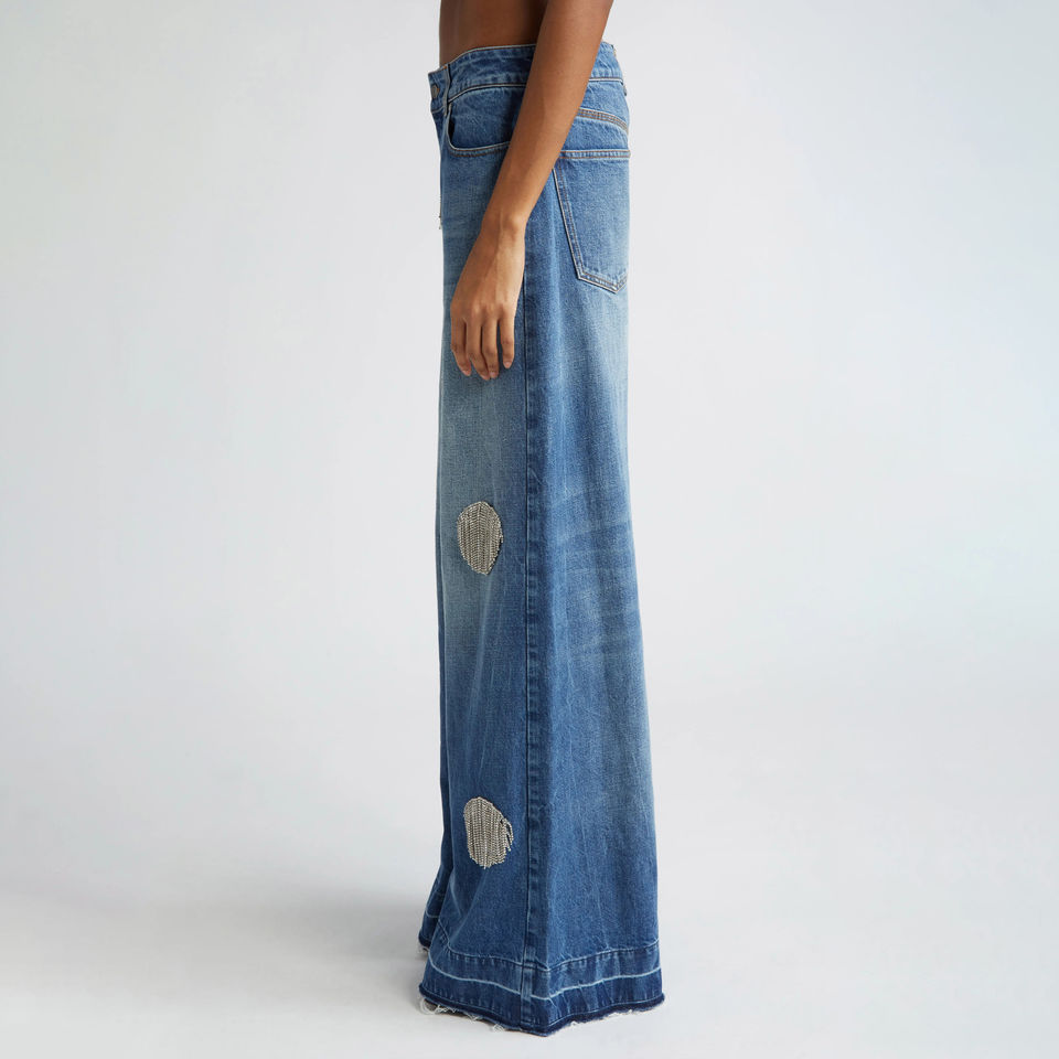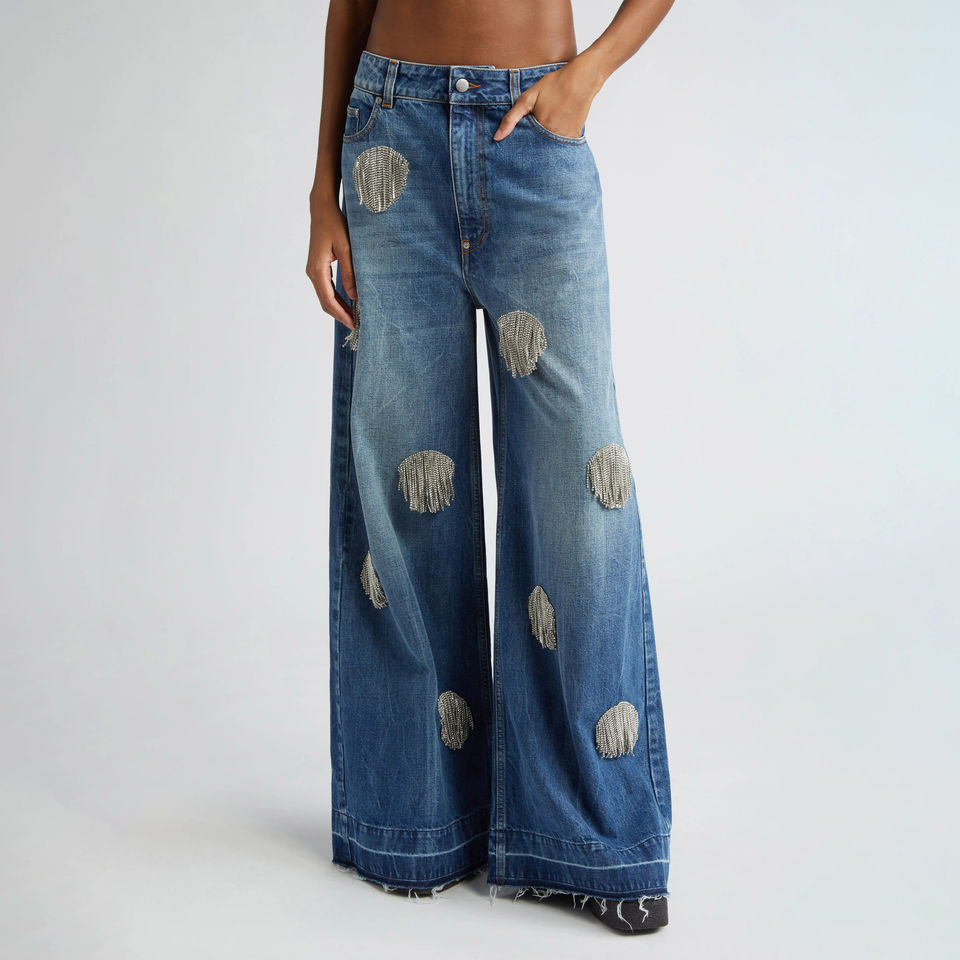 คีย์เวิร์ด:กางเกงยีนส์ทรงบานผ้ายีนส์ลำลองสำหรับผู้หญิง