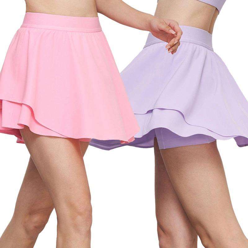 กระโปรงแฟชั่นสำหรับผู้หญิงกระโปรงสั้นอัดพลีทเอวสูงสำหรับใส่เล่นเทนนิสสีพื้นมี2025