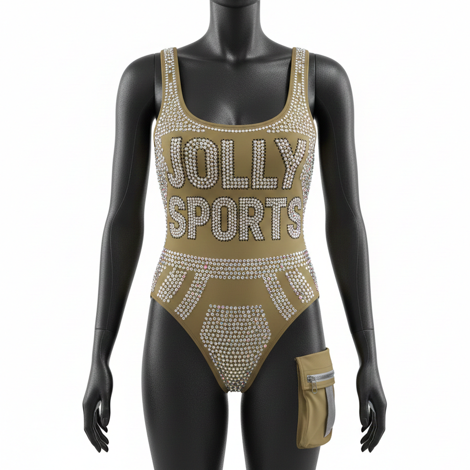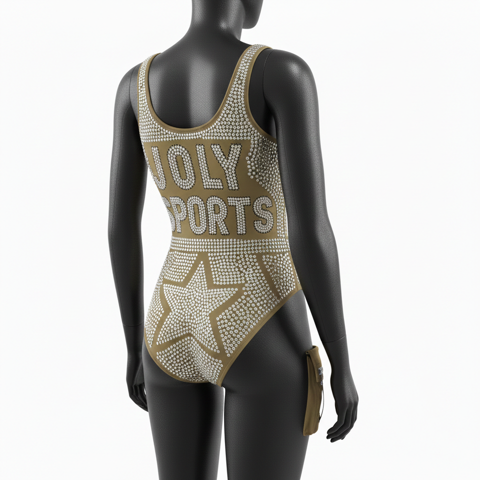 ชุดว่ายน้ำแฟชั่นผู้หญิง ผ้าโพลีสแปนเด็กซ์พรีเมียม 220 GSM เนื้อผ้ายืดเรียบเนียน แต่งคริสตัล รับทำโลโก้ตามสั่ง