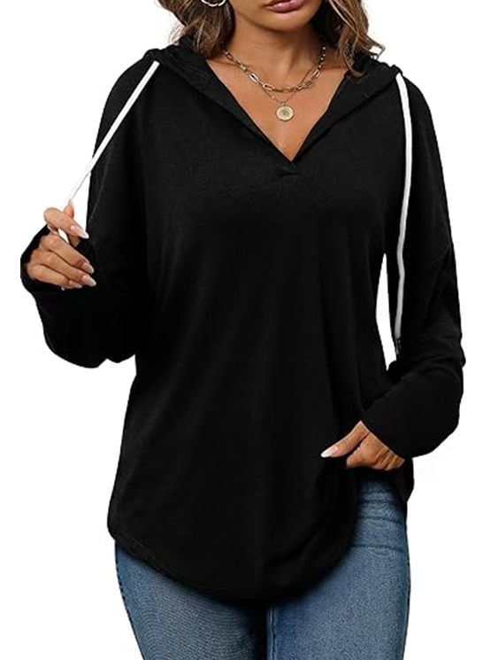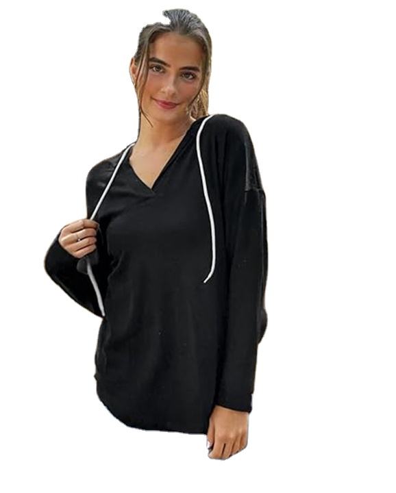 เสื้อมีฮู้ดแฟชั่นสำหรับผู้หญิงเสื้อสเวตเตอร์แขนยาวแบบสวมหัวทรงหลวมไซส์ใหญ่พิเศษ