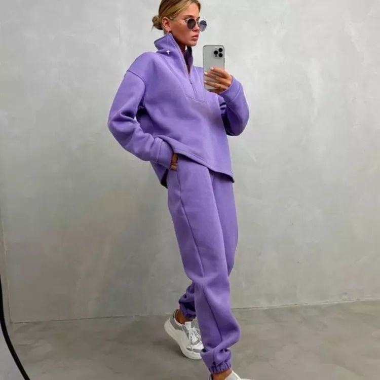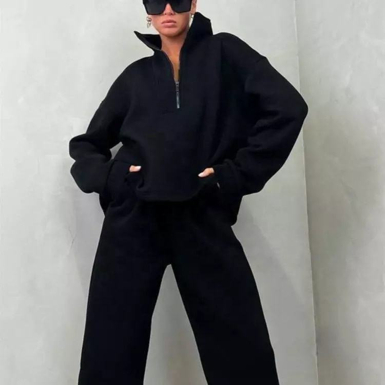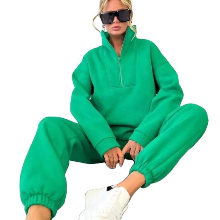 ชุดวอร์มแฟชั่น2ชิ้นสำหรับผู้หญิง,ชุดกีฬาสองชิ้นเสื้อโปโลลำลองมีซิปขนาดใหญ่สำหรับผู้หญิงกางเกงวอร์ม2ชิ้นสำหรับฤดูใบไม้ร่วง