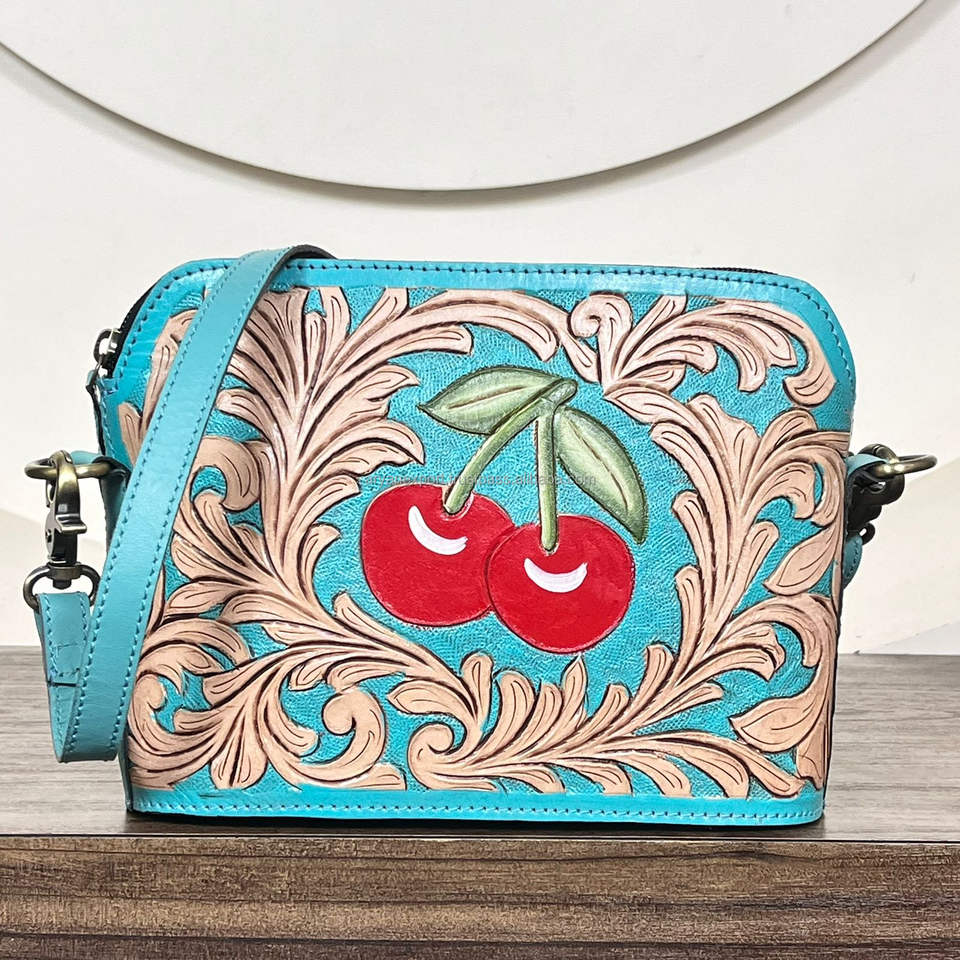 Product Name:Hand Tooled Genuine Leather Cherry Crossbody Bag