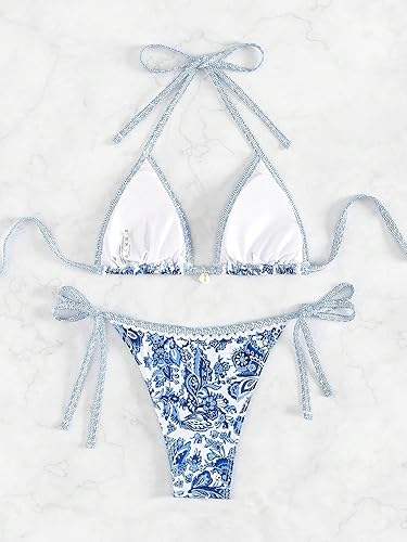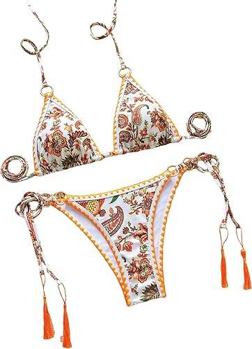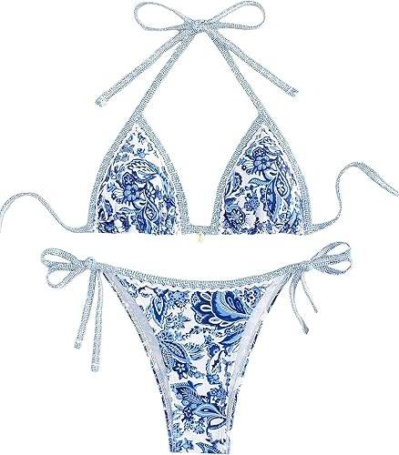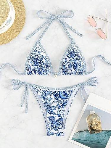 ชุดว่ายน้ำสตรีพิมพ์ลายดอกไม้แบบเปิดไหล่ข้างเดียวชุดบิกินี่แบบคล้องคอลายดอกไม้สำหรับฤดูร้อน