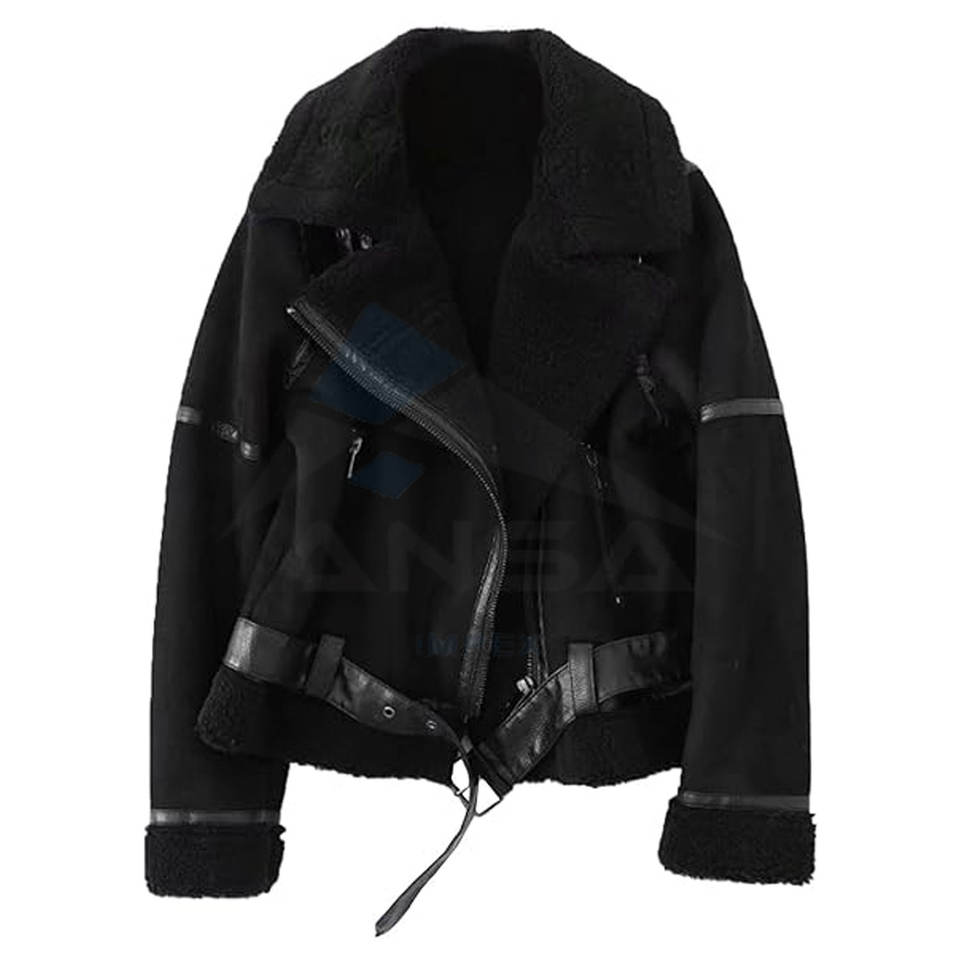 เสื้อแจ็คเก็ตมอเตอร์ไซค์ขนแกะเทียมสำหรับผู้หญิง เสื้อพาร์กาบุหนา เสื้อโค้ทฤดูหนาว เสื้อคลุมหนังเทียมขนแกะเทียมสำหรับอากาศหนาว