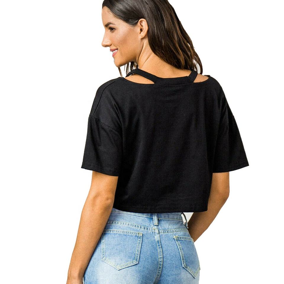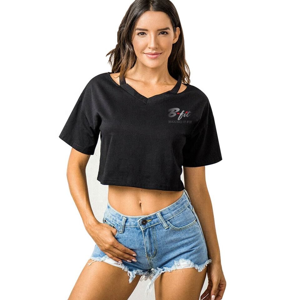เสื้อครอปสำหรับผู้หญิงเสื้อยืดเสื้อครอปสำหรับออกกำลังกายในยิมทำจากผ้าฝ้าย