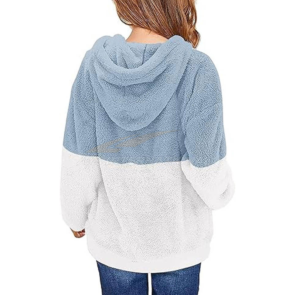 เสื้อสเวตเตอร์ขนแกะมีฮู้ดแบบสวมหัวสำหรับผู้หญิงเสื้อโค้ททรงหลวมลำลองนุ่มมีกระเป๋าจิงโจ้สำหรับฤดูหนาวและฤดูใบไม้ร่วงสีฟ้าสีเทา