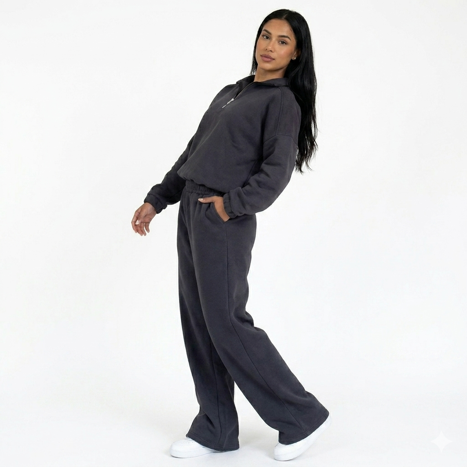 ชุดวอร์มผ้าฟลีซสำหรับผู้หญิง เสื้อฮู้ดซิปครึ่งตัวและกางเกงจ็อกเกอร์ เนื้อผ้านุ่ม หนานุ่ม ขายส่ง รับผลิตแบบ OEM บริการสกรีนโลโก้ตามสั่ง