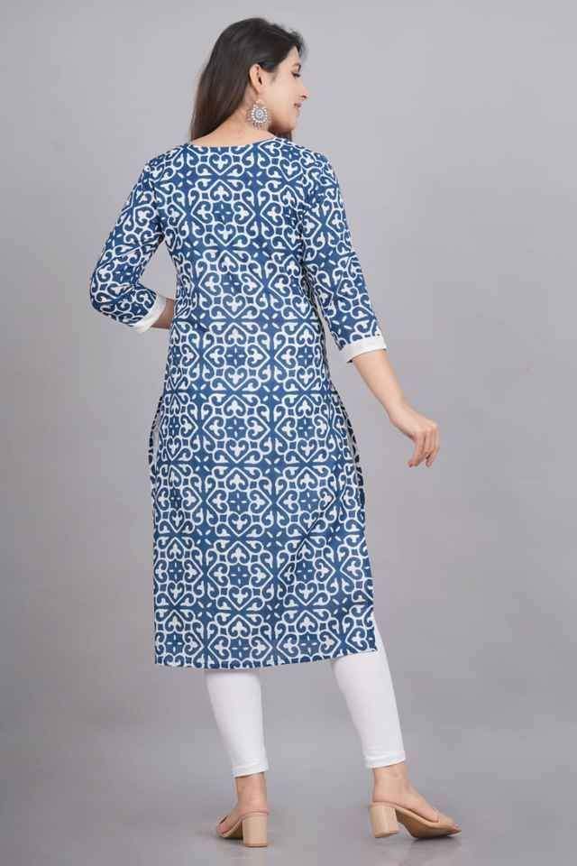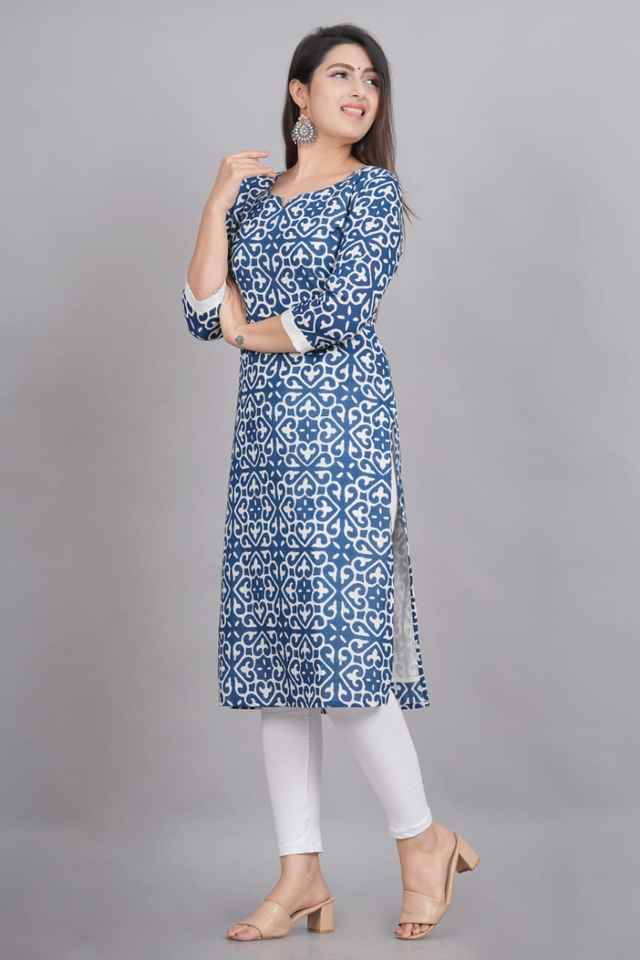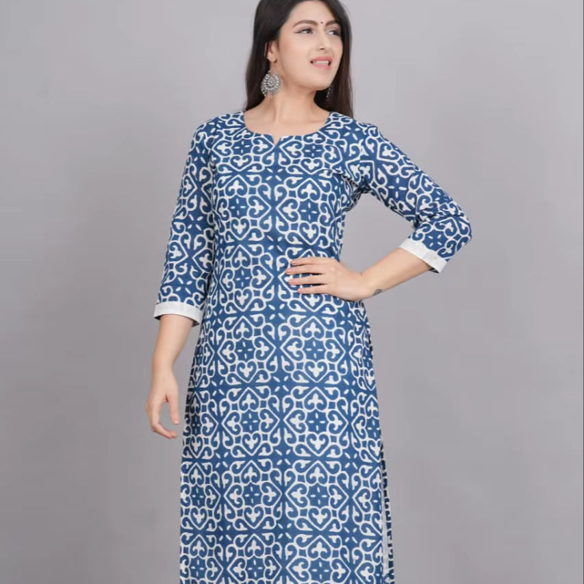 ชุดคุर्ติผ้าฝ้ายพิมพ์ลายดอกไม้สำหรับผู้หญิง แขนสามส่วน ความยาวคลุมเท้า สไตล์ชาติพันธุ์ ใส่สบาย ระบายอากาศได้ดี เป็นมิตรกับสิ่งแวดล้อม สไตล์อินเดีย เหมาะสำหรับงานเทศกาล
