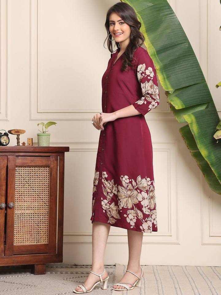 ชุดเดรสมิดิลายดอกไม้สำหรับผู้หญิงคอจีนแขนสั้นมีเข็มขัดปลายบานสำหรับฤดูร้อน