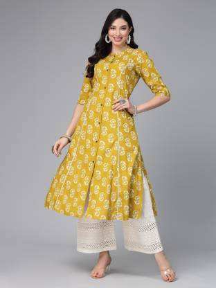 ชุด kurta เส้นใยวิสคอสแบบใหม่สำหรับผู้หญิงพิมพ์ลายดอกไม้ประดับริ้วรอยเทศกาลปาร์ตี้ปรับสี/ขนาดได้ตามต้องการ