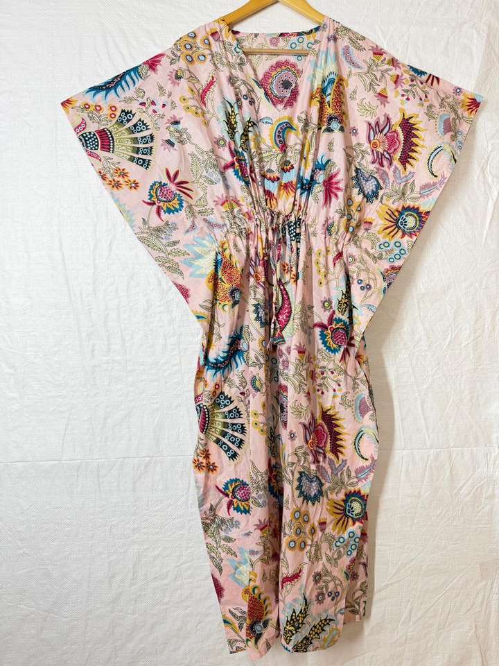 ชุดเดรสผ้าฝ้ายพิมพ์ลายดอกไม้สำหรับผู้หญิง สไตล์โบฮีเมียน ชุดคลุมชายหาดทรงหลวม ชุดคลุมยาวสำหรับฤดูร้อน ไซส์ใหญ่ เหมาะสำหรับใส่ไปเที่ยวพักผ่อน