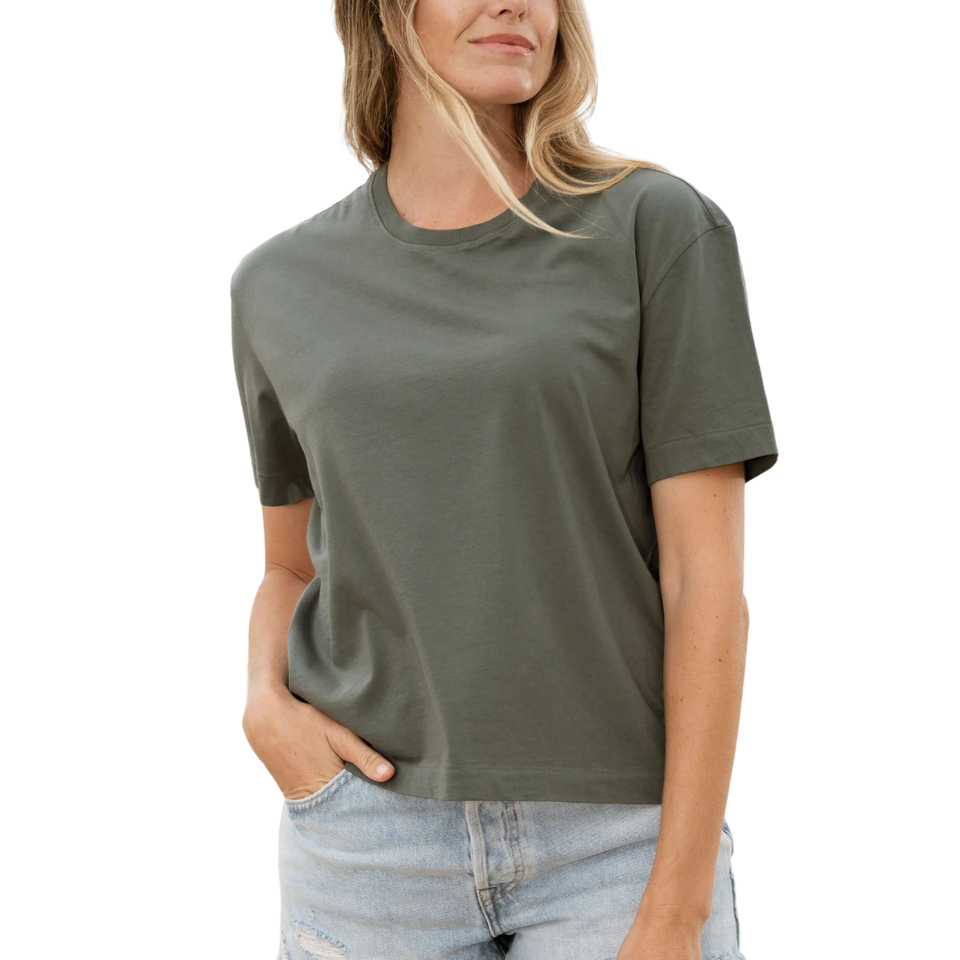 Women Forest Green Short Box Crew Neck T Shirt 100% Luxury Organic Cotton Pre Shrunk GOTS Certified Premium Soft Breathable Tee