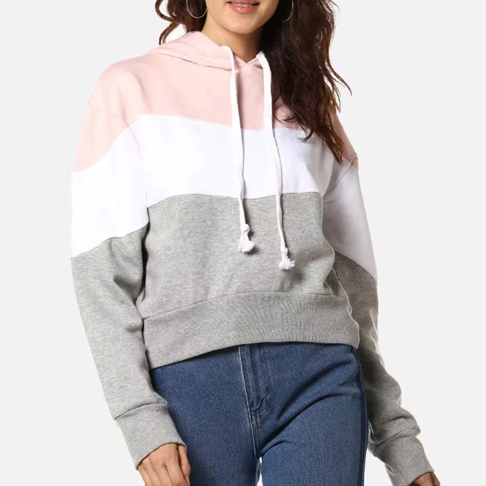เสื้อฮู้ดผู้หญิงสีสันตัดกัน ผ้าฟลีซนุ่ม แขนยาว เป็นมิตรกับสิ่งแวดล้อม แห้งเร็ว สวมใส่สบายๆ สไตล์สตรีทแฟชั่น สำหรับฤดูหนาว ขายส่ง