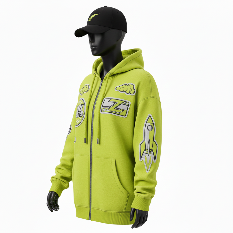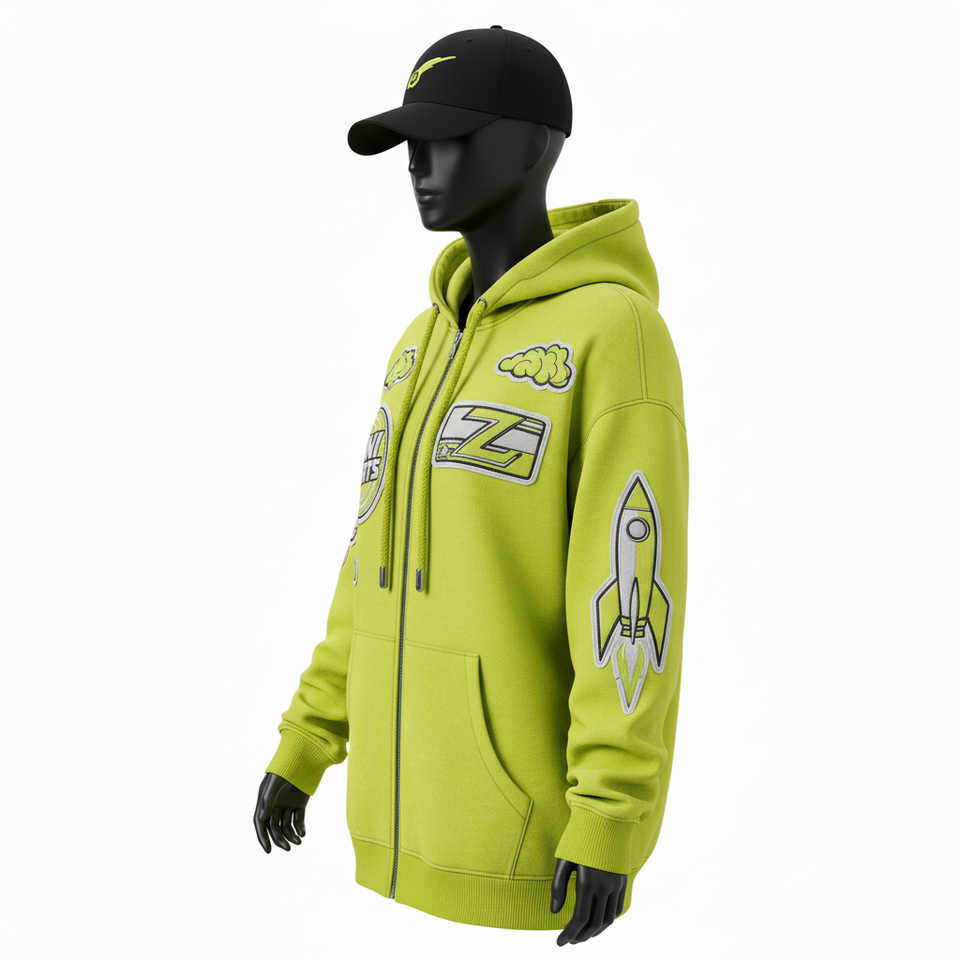 เสื้อฮู้ดดี้ผู้หญิงแบบซิปเต็มตัว คุณภาพพรีเมียม ผ้าฟลีซเนื้อนุ่ม ผสมผ้าฝ้ายและโพลีเอสเตอร์ สีเขียวมะนาว ปักโลโก้และแพทช์ เสื้อฮู้ดดี้แบบพื้นฐาน