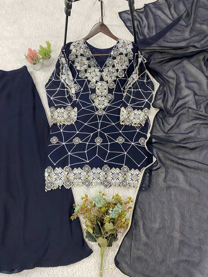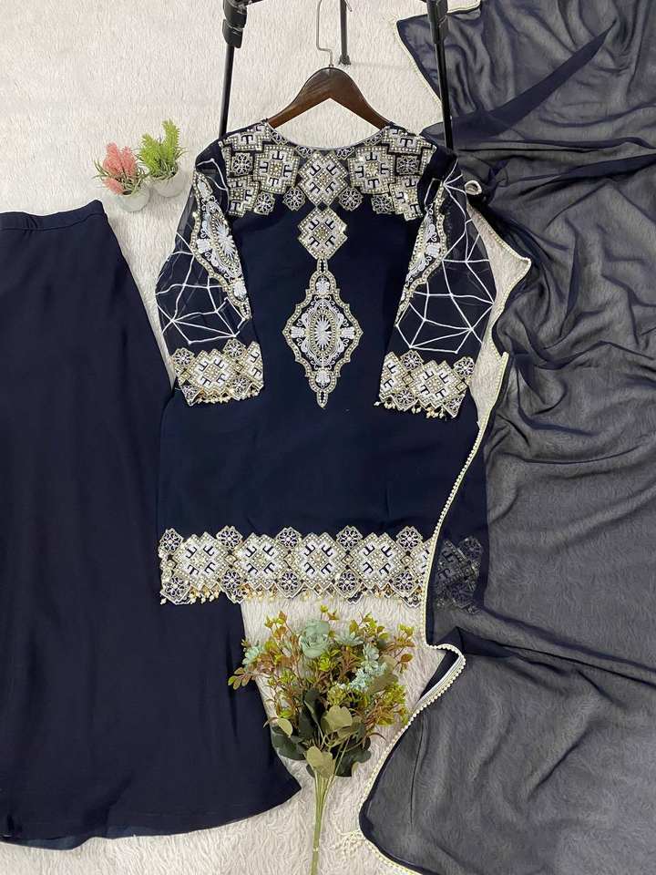 ชุดสูทปาลาซโซ่ผ้าจอร์เจตต์ปักลายสำหรับผู้หญิง พร้อมผ้าคลุมไหล่