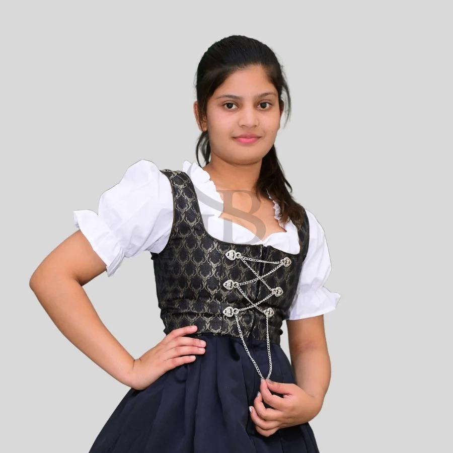 Women German Oktoberfest Costumes Bavarian Dirndl Dresses Mini Drindl Frock With Blouses Cotton Checkered/Polyester Fabric