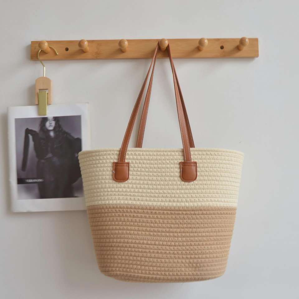 กระเป๋าโท้ทสะพายไหล่สายเดี่ยวสำหรับผู้หญิงกระเป๋าทอเชือกคอตตอนแบบเรียบง่ายความจุขนาดใหญ่สำหรับช้อปปิ้งสำนักงานขายส่ง