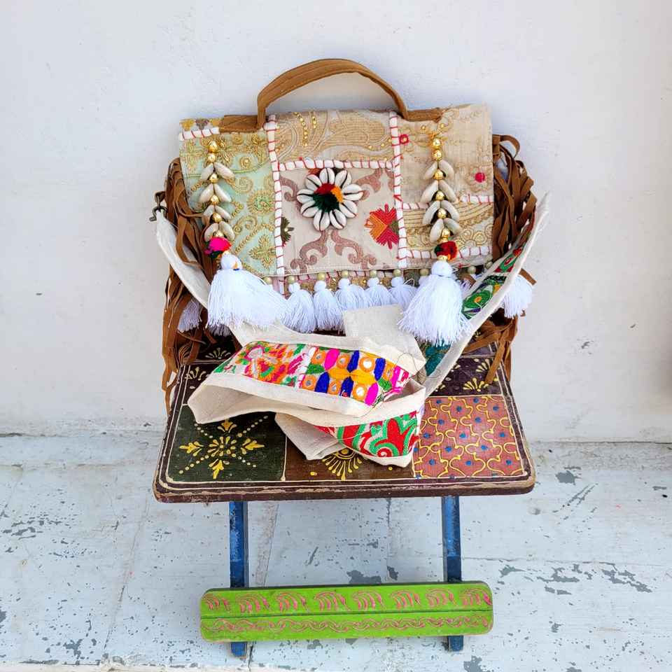 โอเอ็ม แฟชั่น สตูดิโอกระเป๋าสะพายหนังสำหรับผู้หญิงและเด็กผู้หญิง ผ้าฝ้ายผสมสแปนเด็กซ์ ประดับลูกปัดลายนูน