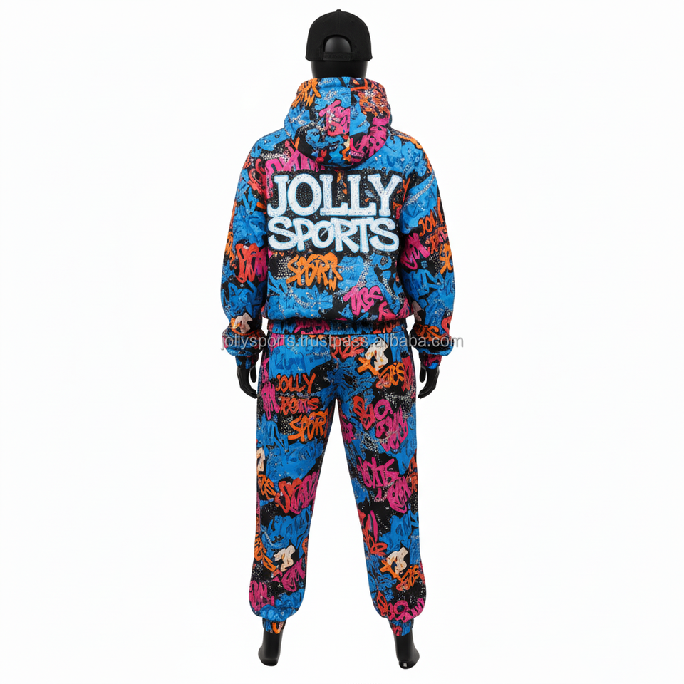 ชุดเสื้อกันลมพิมพ์ลายกราฟฟิตีของผู้หญิงผ้าโพลีเอสเตอร์ระดับพรีเมียมสีฟ้าส้มชมพูออกแบบโลโก้ได้ตามต้องการขนาดพิเศษ210GSM