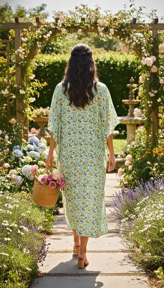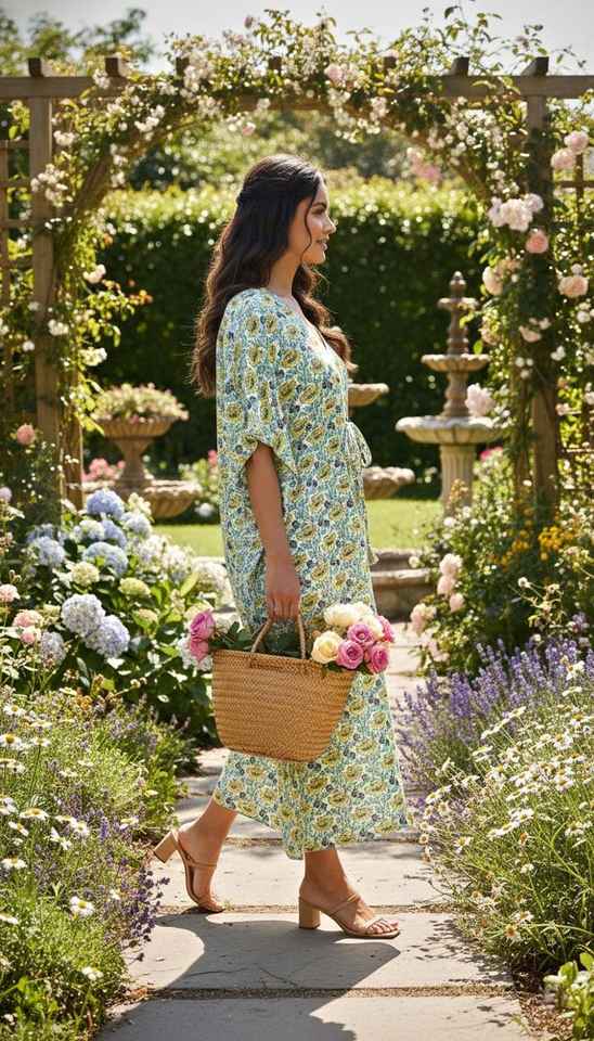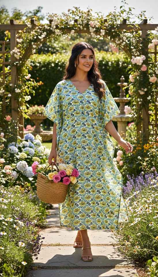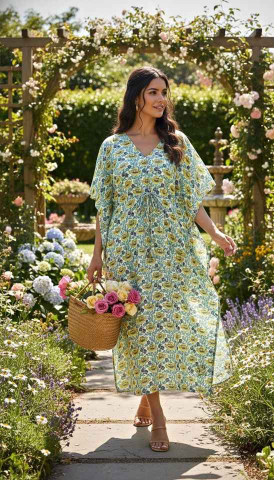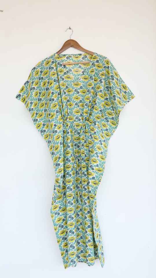 ชุดเดรสผ้าฝ้ายลายดอกไม้สีเขียวเหลืองสำหรับผู้หญิง สไตล์โบฮีเมียน เหมาะสำหรับใส่คลุมชุดว่ายน้ำในช่วงฤดูร้อนและไปเที่ยวชายหาด