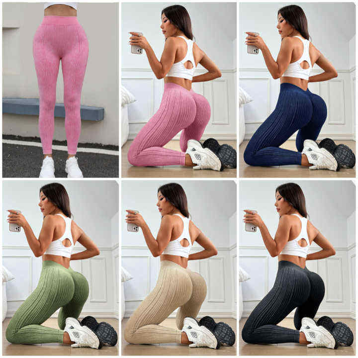 Women Gym Fitness Sportswear Ribbed Workout Tights Clothes Running Scrunch Leggings