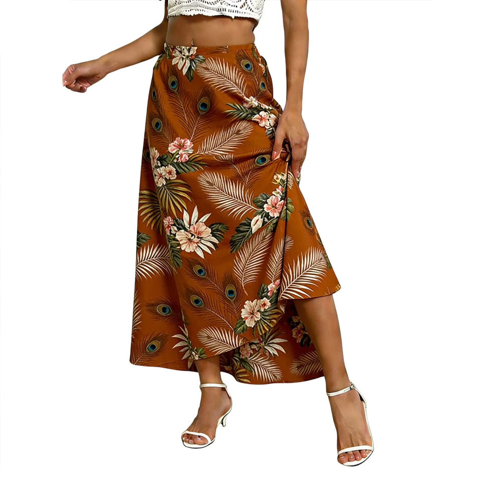 Women Hawaiian Summer Maxi Skirt Tropical Floral Island Beach Skirt Casual Vacation Flowy Lightweight Skirt Wear