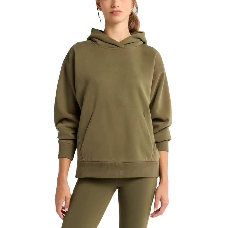 ชุดวอร์มขนแกะมีฮู้ดของผู้หญิงชุดวอร์มสองชิ้นระบายอากาศได้ดีแห้งเร็วการออกแบบที่กำหนดเองสีทึบจ๊อกกิ้งวินเทจ