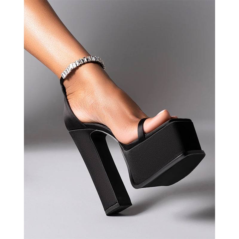 รองเท้าส้นสูงแบบแพลตฟอร์มหนาสำหรับผู้หญิง สายรัดข้อเท้า คุณภาพดี สีดำ สีน้ำตาล รองเท้าส้นตึกแบบคลาสสิกสำหรับสุภาพสตรี